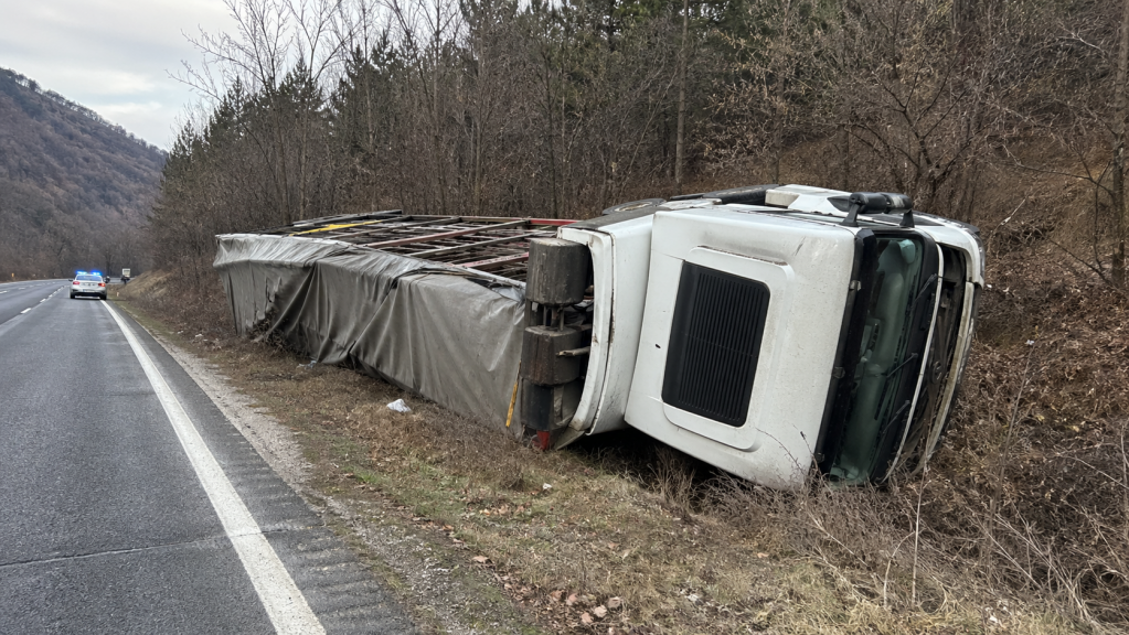 Малко след 07:00 ч. тази сутрин на пътя София – Кюстендил /в района на местността „Стражата“/ се е преобърнал край пътя товарен автомобил със северно-македонска регистрация. Водачът е с повърхностни наранявания.