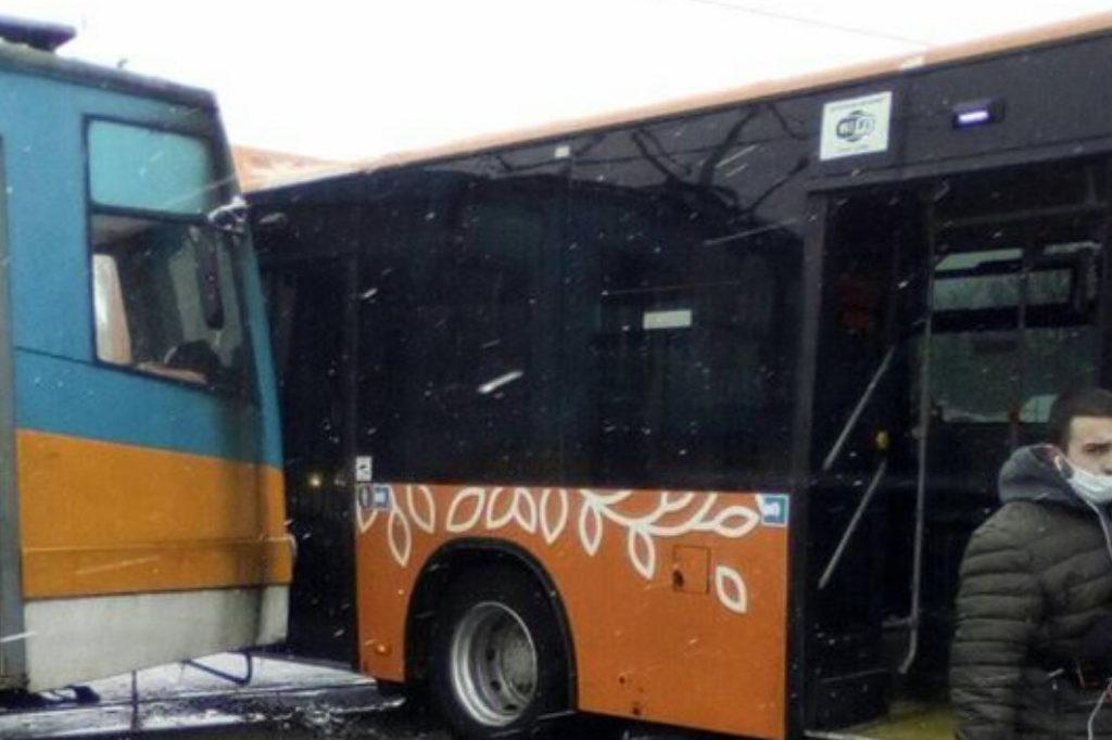 Трамвай и автобус се сблъскаха в София. Инцидентът е станал на булевард „Овча купел“ и улица „Житница“ в следобедните часове от днес.