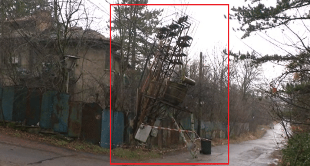Трансформатор виси заплашително над улица „Иван Вазов“ в Банкя. В началото на декември боклукчийски камион е ударил конструкцията и е прекъснал електрозахванването на района на военния санаториум. Броени часове след това, аварията е била „отстранена“, пише „bTV“.