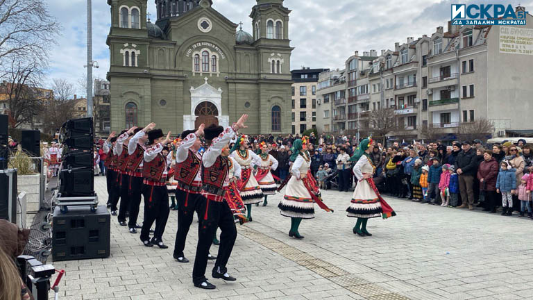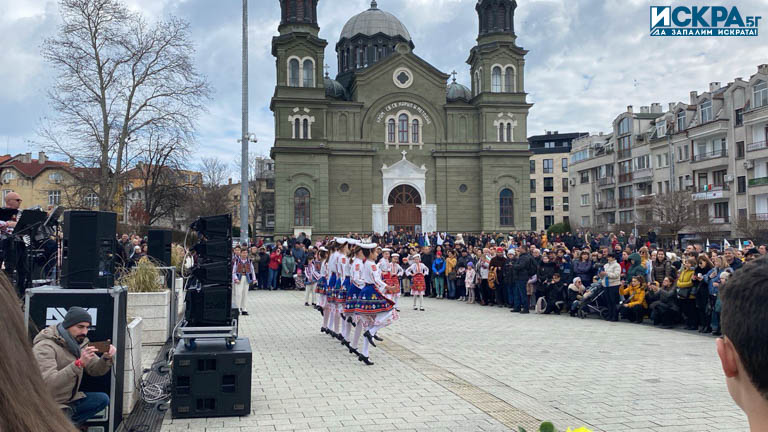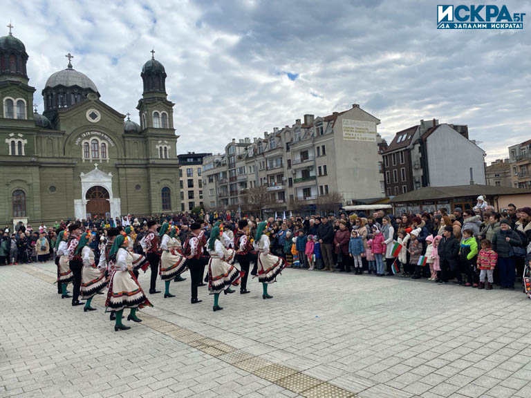 Множество бургазлии и гости на града са се стекли до централния площад, за да се включат в честванията, видя журналист на Искра.бг.