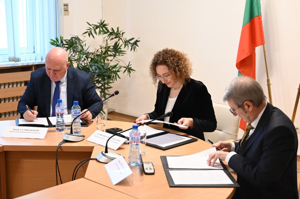 Споразумение за сътрудничество между Министерството на труда и социалната политика /МТСП/, Министерството на образованието и науката /МОН/ и Министерството на здравеопазването /МЗ/ при предоставянето на подкрепа за личностно развитие на деца и ученици със специални образователни потребности и с хронични заболявания подписаха тримата ресорни министри д-р Иванка Шалапатова, проф. Галин Цоков и проф. Христо Хинков.