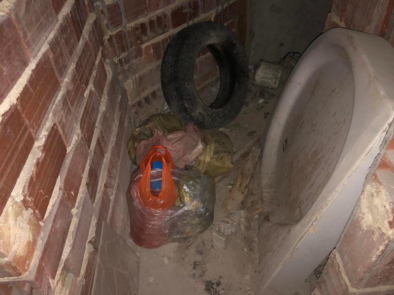 От общото мазе, на адреса на ул. „Дебелт“, са били открити и иззети 10-литрова бутилка с прозрачна течност, 11-литрова бутилка с бяло кристалообразно вещество, бутилка с остатъци от бяло кристалообразно вещество, празни лекарствени опаковки и др.