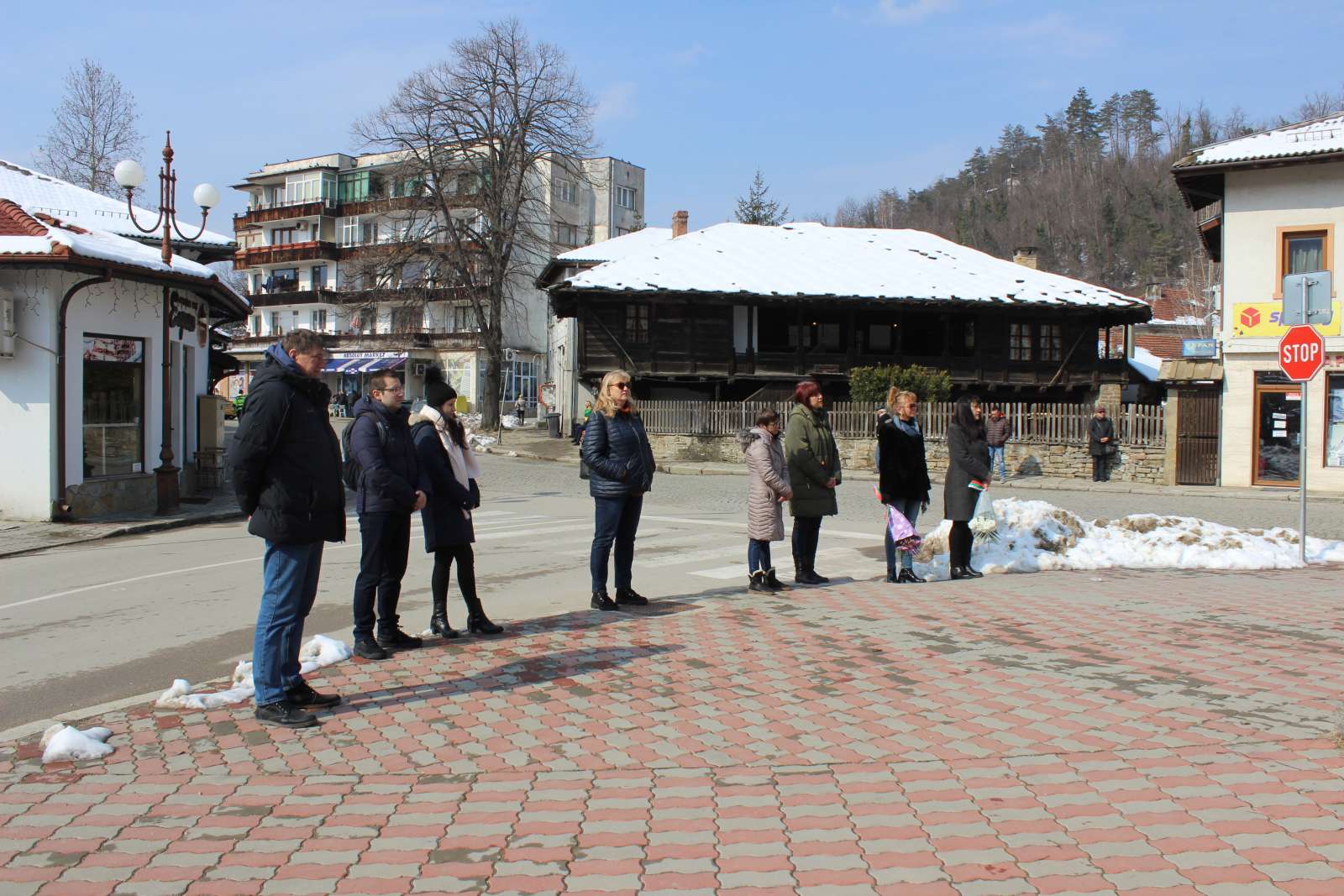 В знак на почит цветя поднесоха още общински съветници и екипа на Специализирания музей за резбарско и зографско изкуство в Трявна. Всички присъстващи коленичиха и сведоха глави в едноминутно мълчание пред силата на духовния стремеж към свобода и правда за целия български народ, които не напускат Ангел Кънчев до сетния му дъх. През днешния празничен ден вратите на родната му къща–музей остават безплатно отворени за всички посетители.
