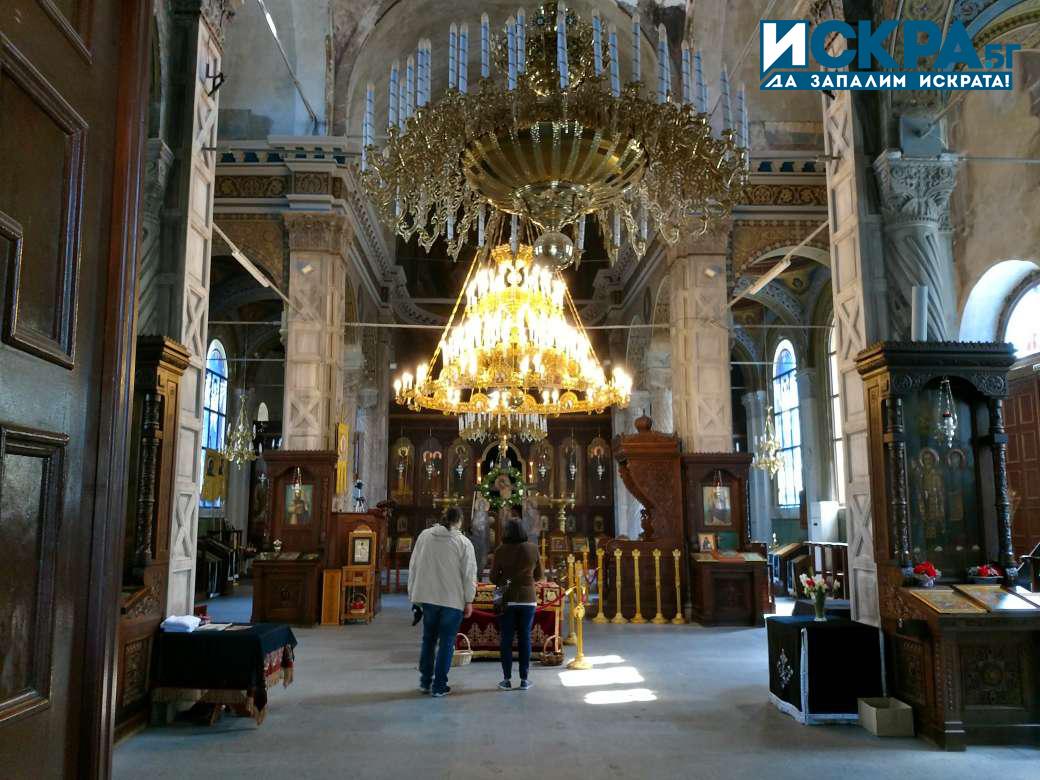 Пред най-големия бургаски храм „Св. св. Кирил и Методий“ започна сглобяването на оборудването за празничната служба, която ще се проведе в съботната вечер, когато ще бъде провъзгласено Възкресението Христово. Пред храма има и поставени дезинфектанти.