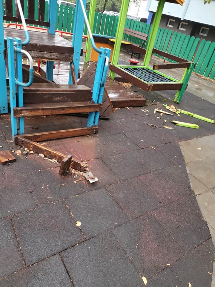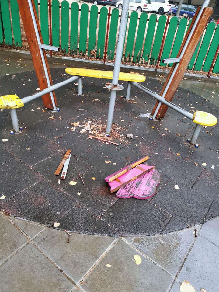 Врачанска детска площадка остана без здрави съоръжения за игра. За това съобщава потребител в социалната мрежа Фейсбук.