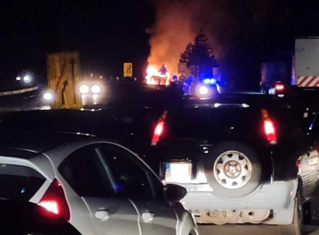 От „Пътната агенция“ съобщиха за злополуката в 21:01 часа. Оттам не уточняват как е възникнал пътният инцидент и дали има пострадали. На мястото има екипи на полицията. Очевидци съобщават, че на местопроизшествието е пристигнала пожарна. От снимки, разпространени в социалната мрежа, се вижда, че има пожар.