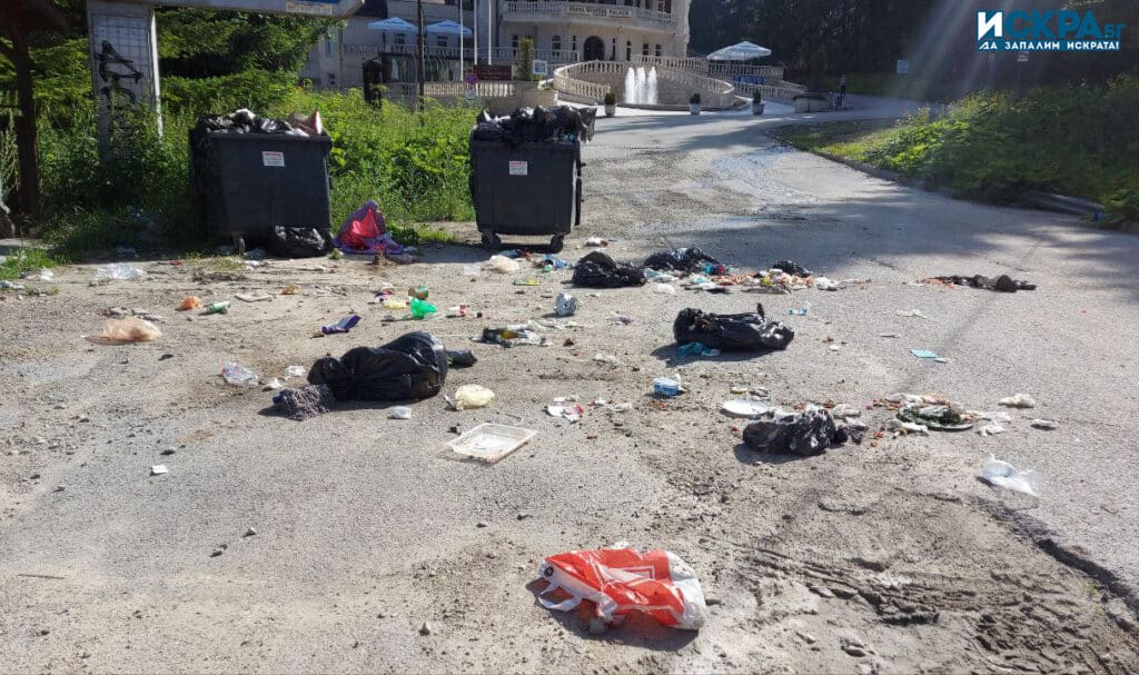 Това пишат читатели на Искра.бг в сигнал, пристигнал на редакционната ни поща. Той е придружен от актуални снимки, на които се виждат разпръснати торби с битови отпадъци около кофите за смет в курорта. Само на метри от замърсените места се намират хотели, в които в момента почиват стотици туристи, избрали тази дестинация за лятната си почивка.