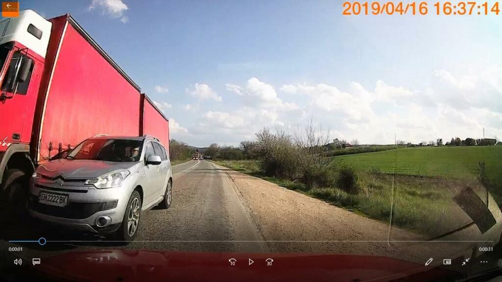 Авторът на кадрите е Иван Йоцов. Той е „хванал“ доста опасно неправилно изпреварване на еднолентов път. На кадрите се вижда сив „Ситроен“, който влиза в насрещното, за да изпревари голям товарен камион.