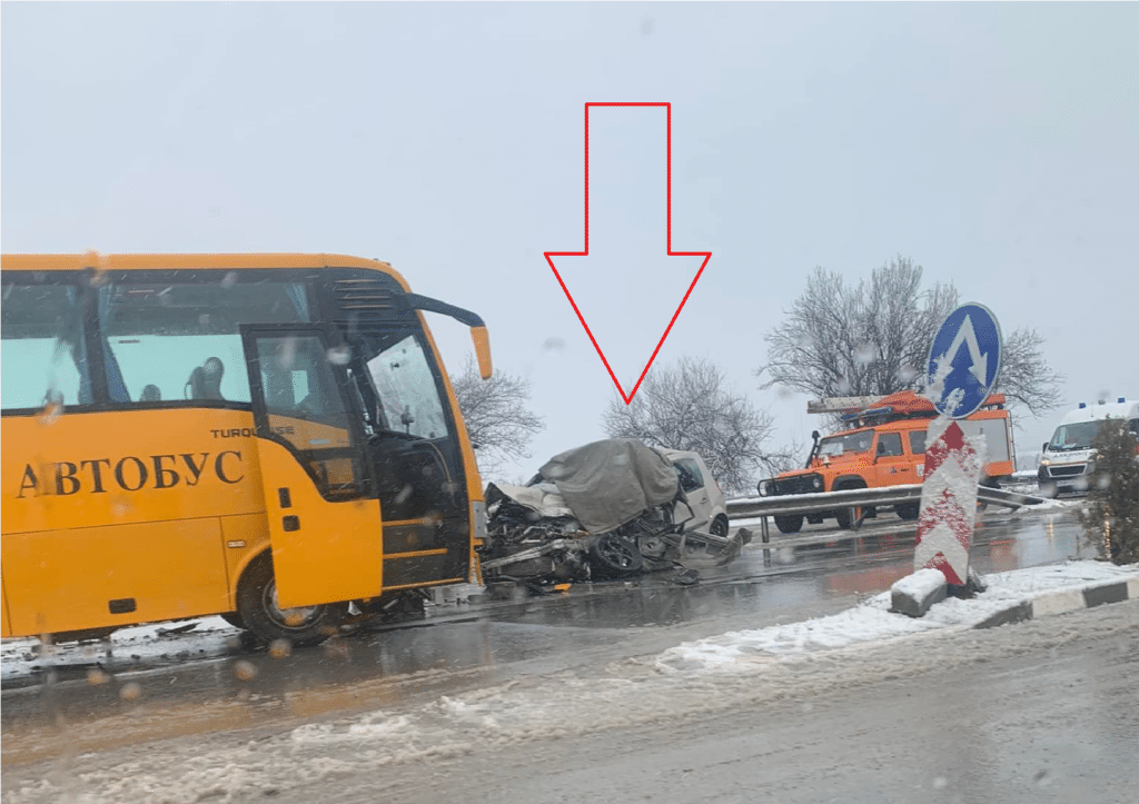 Инцидентът е станал около 07:30 часа днес. До тир паркинг край Смядово са се ударили лек автомобил „Рено“ и автобус, който превозва ученици. Пострадали ученици, които са пътували в автобуса няма. Към мястото на инцидента веднага са насочени екипи на полиция, пожарна и Спешна помощ.