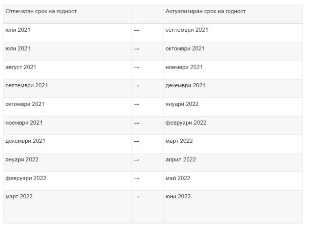 На всички флакони със срок на годност след март 2022 вече ще бъде отразен новият 9‑месечен срок на годност.