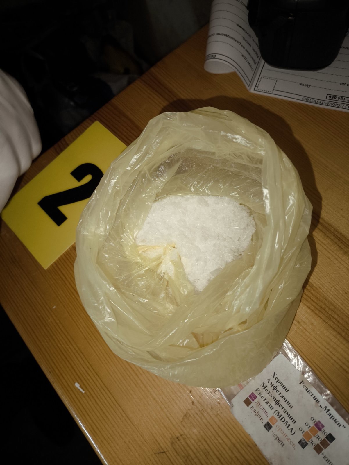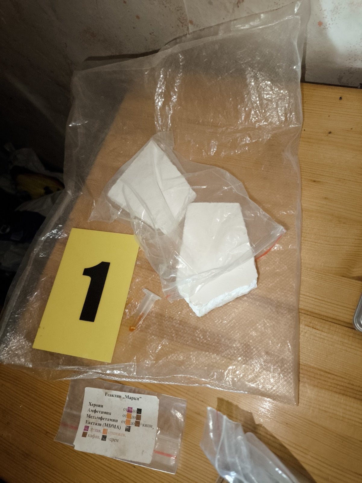 При акцията в района на поморийската улица „Стара планина“ е задържан 31-годишен криминално проявен помориец, в чийто дом са намерени и иззети – два пакета от по 0.500 гр. с наркотични вещества /амфетамин и метамфетамин /кристал//.