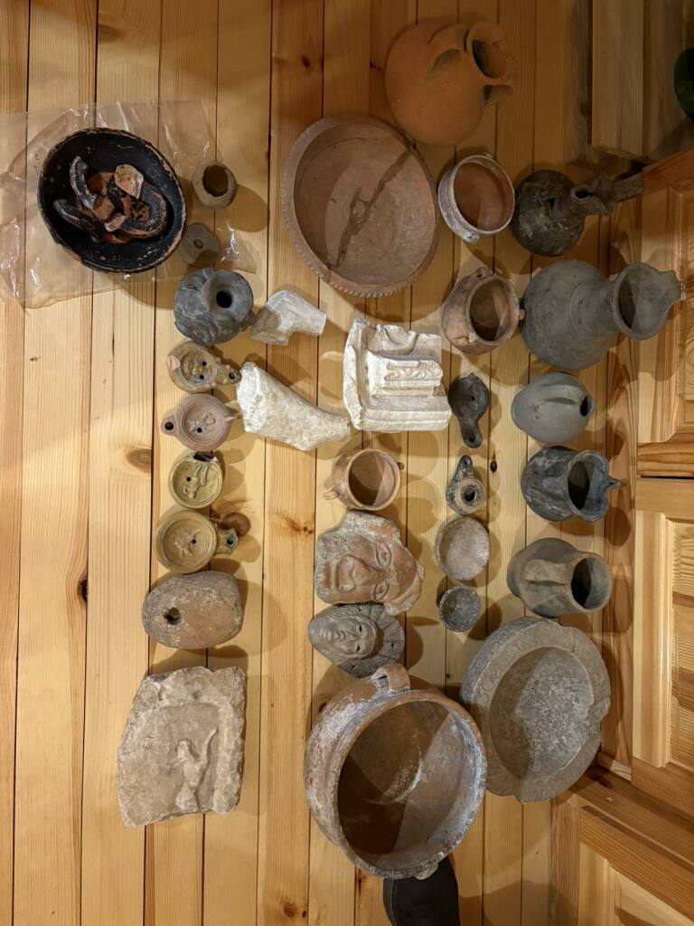 Сред намерените обекти от служители на ОДМВР- Шумен са керамични съдове, керамични лампи, фрагменти от обръчна плочка, мраморни фрагменти от облицовка, керамични маски, мечове със съвременно изработени дръжки.