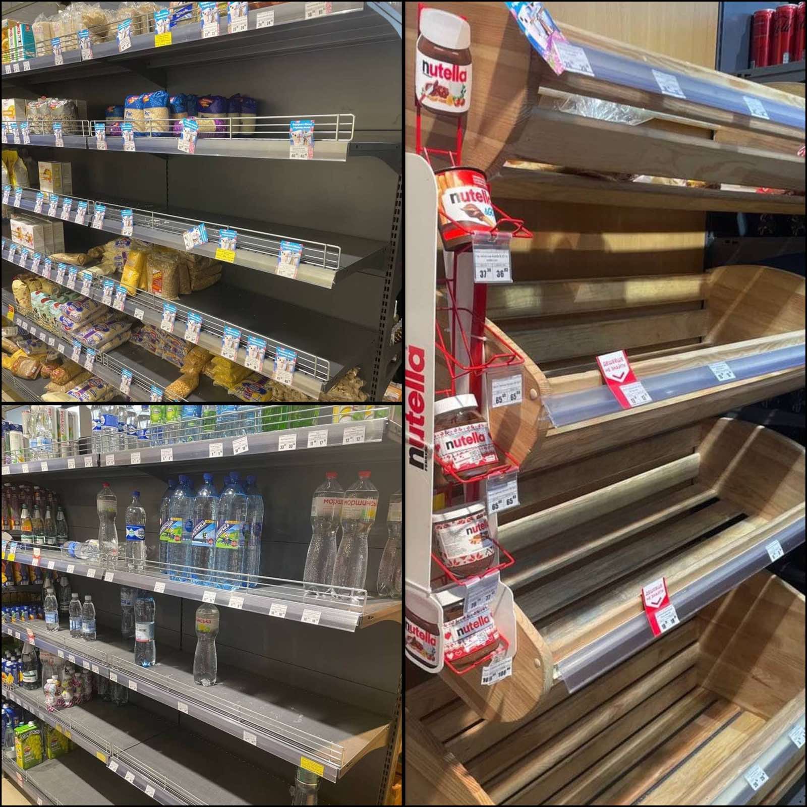 Същевременно в „Telegram“ бяха публикувани и снимки от магазини в Украйна с опразнени щандове със стоки от първа необходимост.