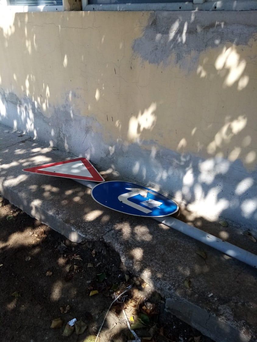 Тръбата с поставените на нея два пътни знака Б1 “Пропусни движещите се по пътя с предимство” и Г2 „Движение само надясно след знака“ са открити на посочения адрес. Днес пътното съоръжение е било върнато на знаковото стопанство.