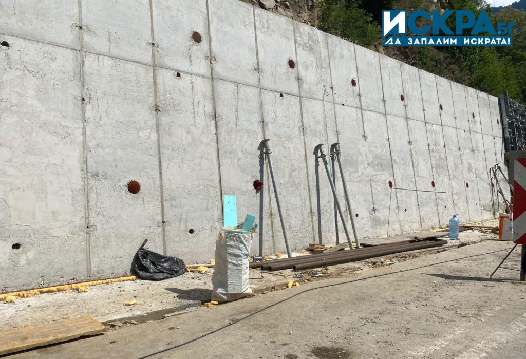 В момента приключва процедурата, обявена от АПИ, за избор на фирма за поддържане на пътищата в Кюстендилска област. Изграждането на полутунела е извършвано чрез инхаус поръчка, строителството на обекта е недовършено и е въведена временна организация на движението. След узаконяването на този тип обекти чрез предложената промяна на ЗУТ, при възобновяването на строителните дейности на обекта е предвидено полагане на плътен асфалтобетон. Сезирани са представители на строителния надзор и фирмата-изпълнител, за да бъдат премахнати натрупаните зад мантинелата скални късове.
