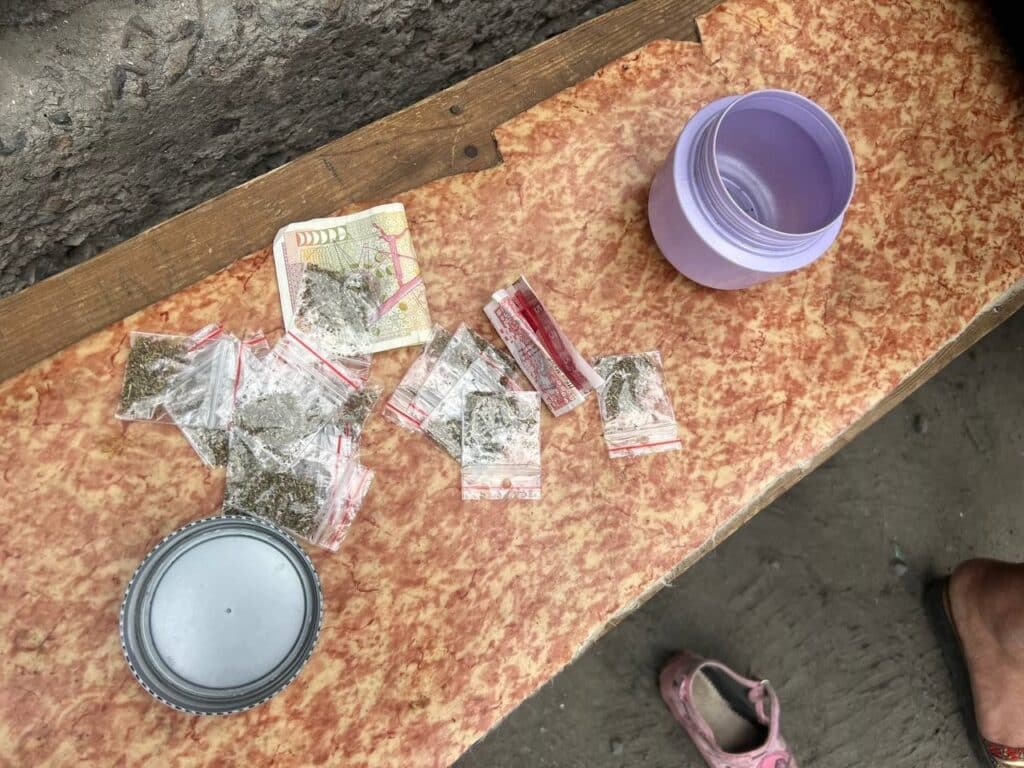 Полицаите са извършили претърсване в частния имот, разположен на ул. „Крайна“ и обитаван от 51-годишна бургазлийка, като на различни места /в кутия от крем за ръце, под черга, в кухина под прозорец и др./ намерили и иззели множество свивки с канабис, подготвени за разпространение.