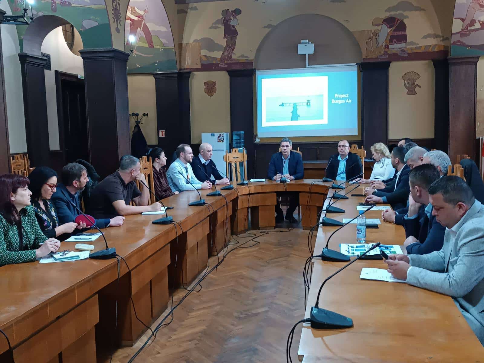 На дневен ред бе поставен въпросът за конкретни действия, чрез които да се спре тревожната тенденция за намаляването броя на полети от и до Летище Бургас. Участниците разгледаха различни предложения и въпроси, които ще бъдат отправени към концесионера на Бургаското летище и към Министерство на транспорта.