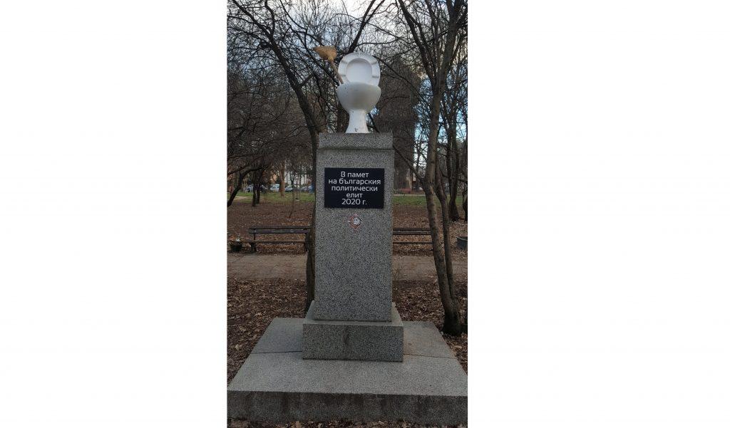 Снимка на паметник на тоалетна чиния с надпис „В памет на българския политически елит 2020 г.“ е публикувана в социалната мрежа Facebook. Авторът на кадъра споделя, че той е направен в столичния квартал „Лозенец“ и че не е използвал Фотошоп.