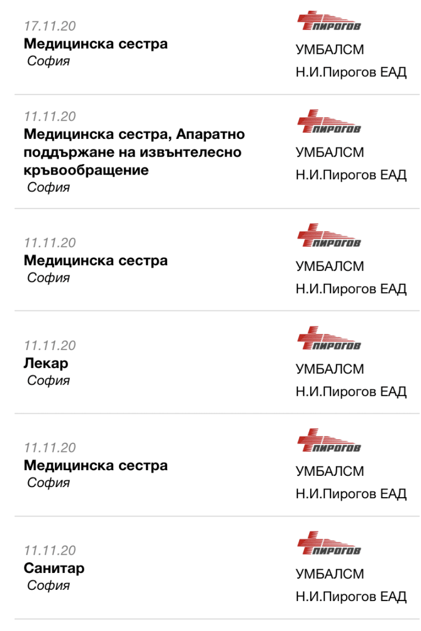 „Възнагражденията на санитарите в УМБАЛСМ „Н.И.Пирогов“ е 3000 лева. Търсят се 80 души, но никой не иска да започне работа там.“