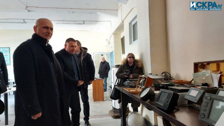 Събев стана свидетел и на уникална симулация в тренажора, в който се подготвят курсантите за правилна навигация. На нея присъства и бургаския депутат от „Продължаваме промяната“ Константин Бачийски.
