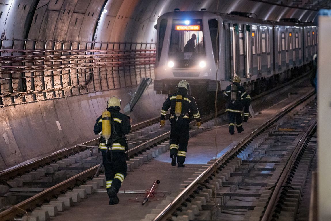Сценарият, по който екипите разиграха в тъмната част на денонощието, бе пожар по време на движение в последния за деня влак по трета метролиния в посока от кв. „Горна Баня“ към кв. „Хаджи Димитър“.
