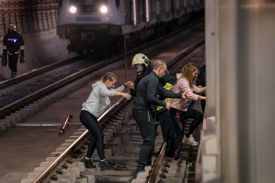 Предприети са първоначални действия за спасяване и евакуиране на пострадали, последователно са насочени и допълнителни екипи. Сфоримират се оперативни участъци – за евакуиране, за гасене на пожара, за изграждане на пунктове за оказване на медицинска и психологическа помощ, триаж и транспортиране на пострадали до болнични заведения. Пожарът във влака е локализиран, извършен е повторен оглед на перона и района на метростанцията за наличие на пътници, които се нуждаят от евакуация.