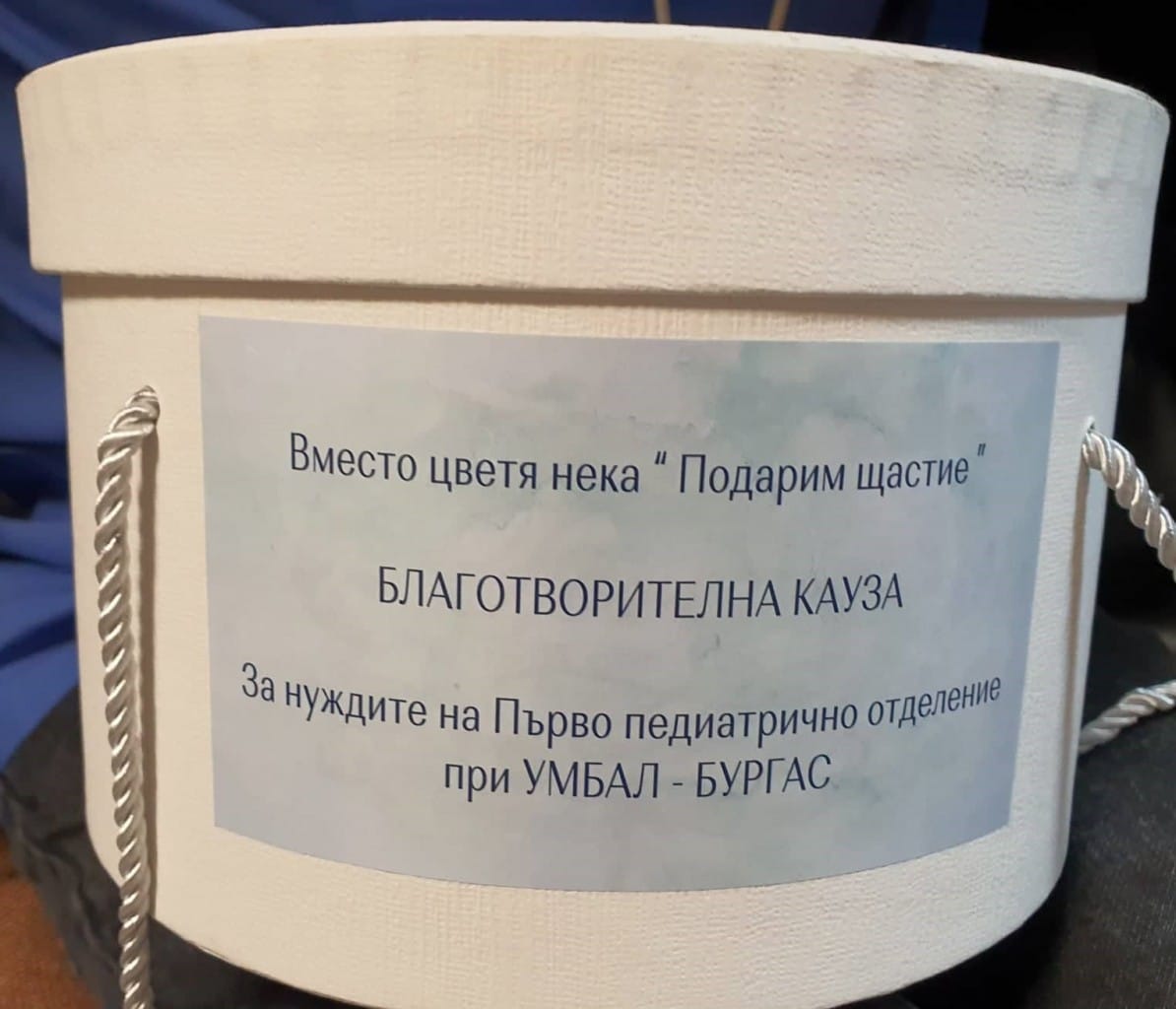 В Първо детско отделение на УМБАЛ-Бургас пристигна перфузорът, който беше купен с пари, спестени от сватбени букети. Дарението беше направено през октомври от младоженците Нели и Яни Андрееви. Средствата са събрани от гостите им, които вместо букети, подкрепят благотворителната инициатива на младото семейство.
