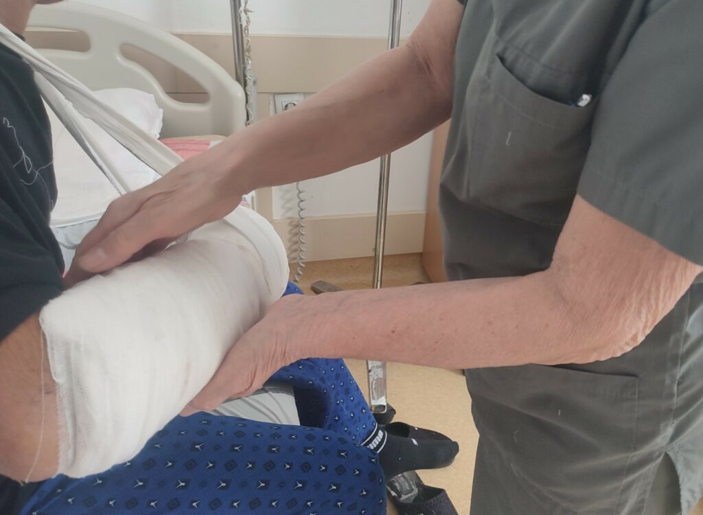 Мъжът е приет в Клиниката по съдова хирургия. Веднага е събран мултидисциплинарен екип за спешна операция в състав д-р Ивайло Хаджиев, д-р Радослав Шишков, д-р Майя Стоянова от Клиниката по съдова хирургия, д-р Емил Стоянов и д-р Виктор Топузян от Клиниката по ортопедия и травматология, с анестезиолог д-р Таня Ганчева.