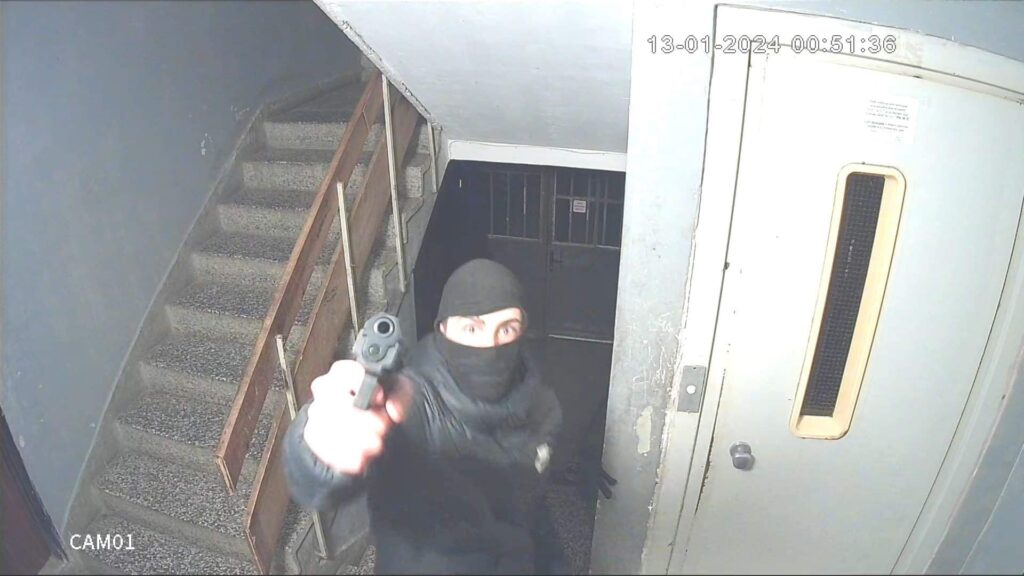 Въоръжени и маскирани лица са влезли в жилищен блок в столичния квартал „Овча купел“ посред нощ. Това показват кадри от видеокамера, поставена от живущите. На записите се вижда как те размахват пистолет на един от етажите. На видеото е запечатан момент, на който се чупи камерата. Маскираните не са успели да разбият входните врати.