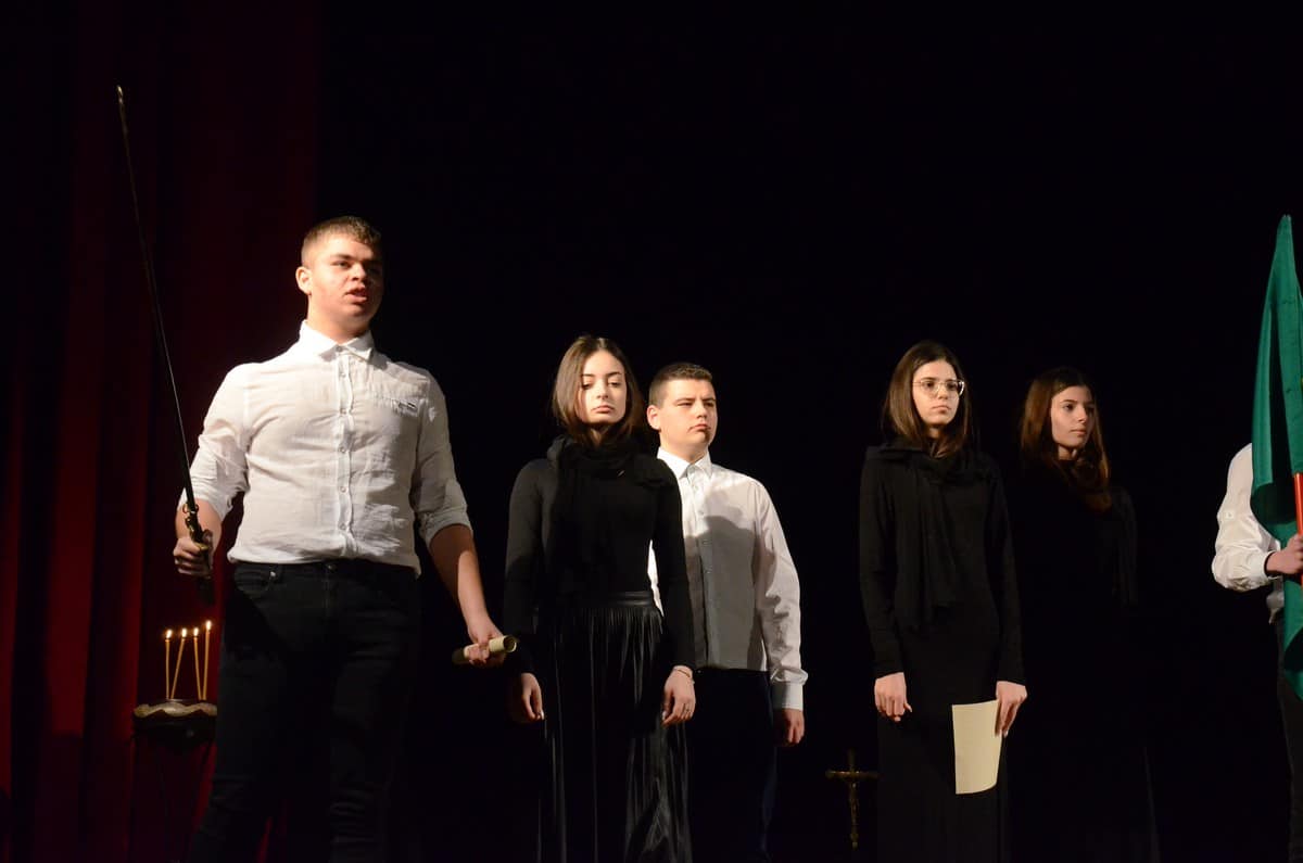 В навечерието на 150-та годишнина от обесването на Апостола на свободата Видинският комитет „Васил Левски“, Профилираната природо-математическа гимназия „Екзарх Антим I“ и Община Видин почетоха паметта на националния ни герой. Събитието беше в Общинския драматичен театър „Владимир Трандафилов“, а на него присъстваха секретарят на Общината Емилиян Енчев, областният управител Огнян Асенов, Негово Високопреосвещенство Видински митрополит Даниил, директорът на Математическата гимназия Ивайло Милушев, който е и председател на Видинския комитет, учители, ученици, граждани.