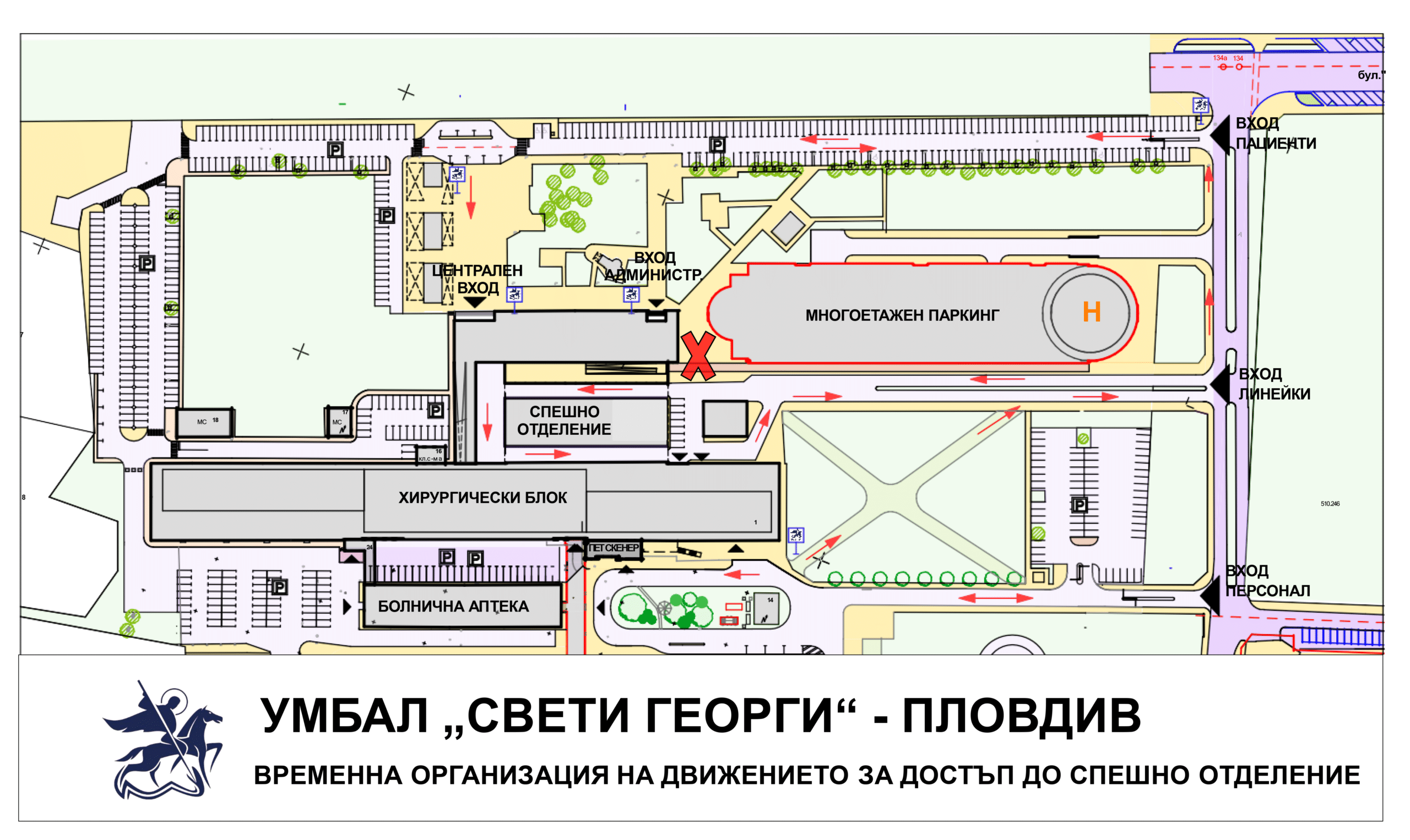 Временно от утре, 27 юни се променя достъпът на пациенти до Спешното отделение на УМБАЛ “Свети Георги”- Пловдив. Промяната се налага заради строителни дейности, свързани с изграждането на Многоетажния паркинг с хеликоптерна площадка към болницата.