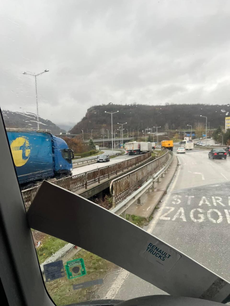 Леките автомобили се отклоняват от полицията през града, а товарните превозни средства изчакват на място.