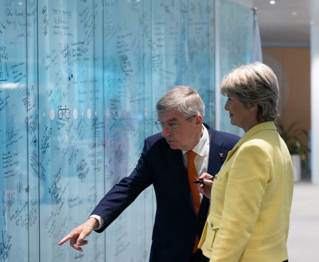 Председателят на Българския стрелкови съюз и член на Комисията по обществени въпроси и корпоративни комуникации към МОК Весела Лечева постави подписа си на олимпийската стена в Лозана. Лечева беше част от делегацията на президента Румен Радев, която вчера имаше среща с президента на МОК Томас Бах.