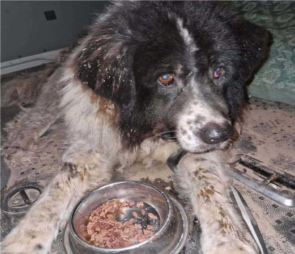 Разчиствайки коритото на реката, двама мъже откриват живо голямо каракачанско куче. Той вероятно е влачен от водата и затиснат от огромни дървета. Оцелял е два дни във водния ад и само размерът му го е спасил. Изтощен и 2 пъти по тежък от залепналата кал по козината, но с очи пълни с надежда.