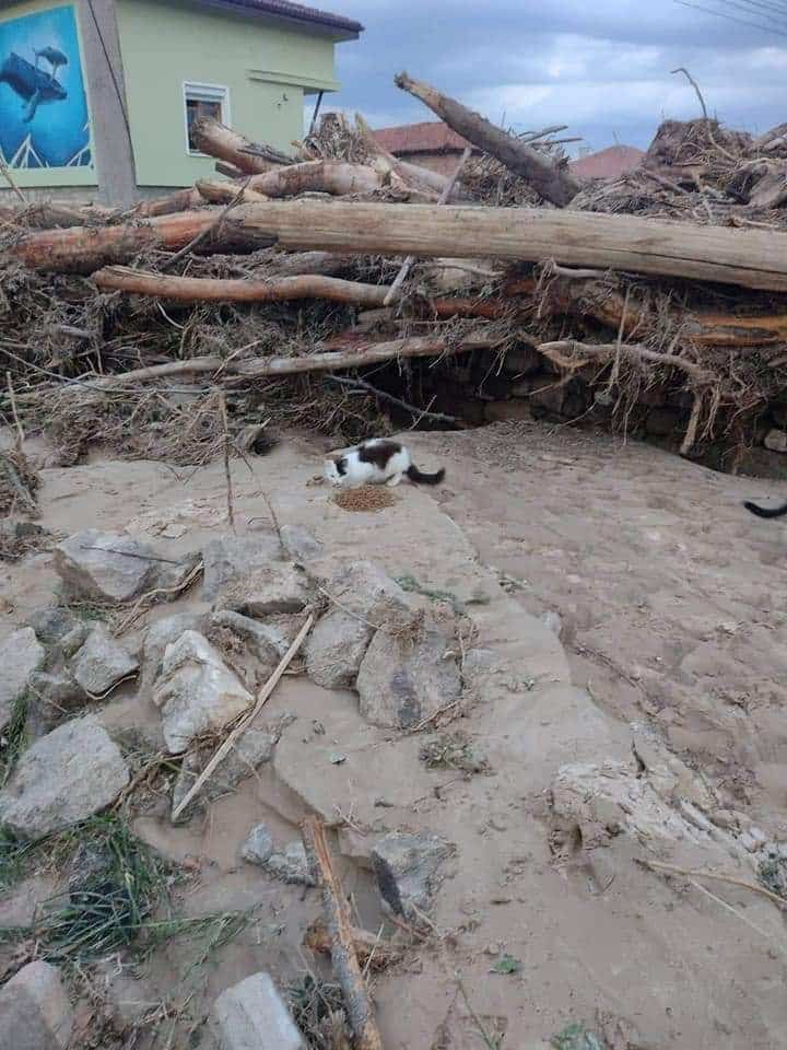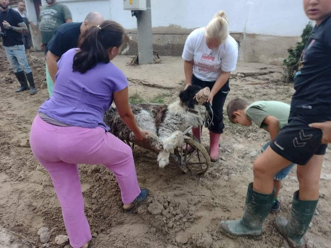 Тонове кал, трупи, коли, покъщнина… Хората са евакуирани…животните…те са последната грижа. Няколко овце тичаха притеснени около полуразрушеният си обор – едната още мокра и кална, скоро я бяха извадили от калта, котки стояха на разрушените огради на домовете си. Удавени вързани кучета… Има и тичащи отвързани…