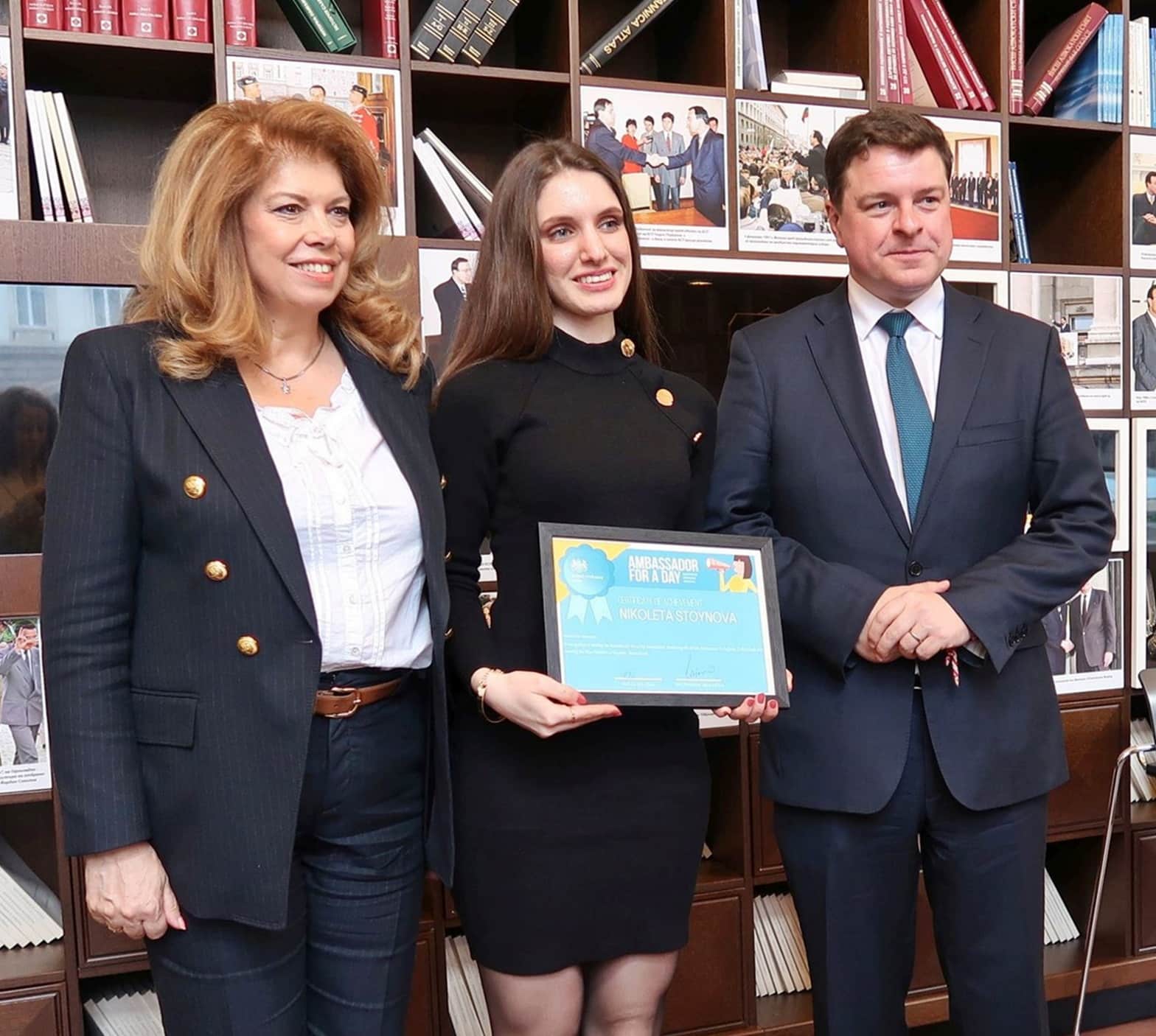 С тези думи вицепрезидентът Илияна Йотова посрещна на „Дондуков“ 2 победителките в инициативата на британското посолство в София „Посланик за един ден“.
