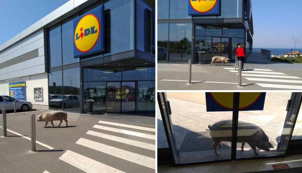 Разходката на прасе пред голяма търговска верига в Созопол беше заснета и публикувана в социалната мрежа Facebook. Снимките са разпространени с коментара „Винаги прясно българско месо“ и предизвикаха усмивката на десетки потребители.