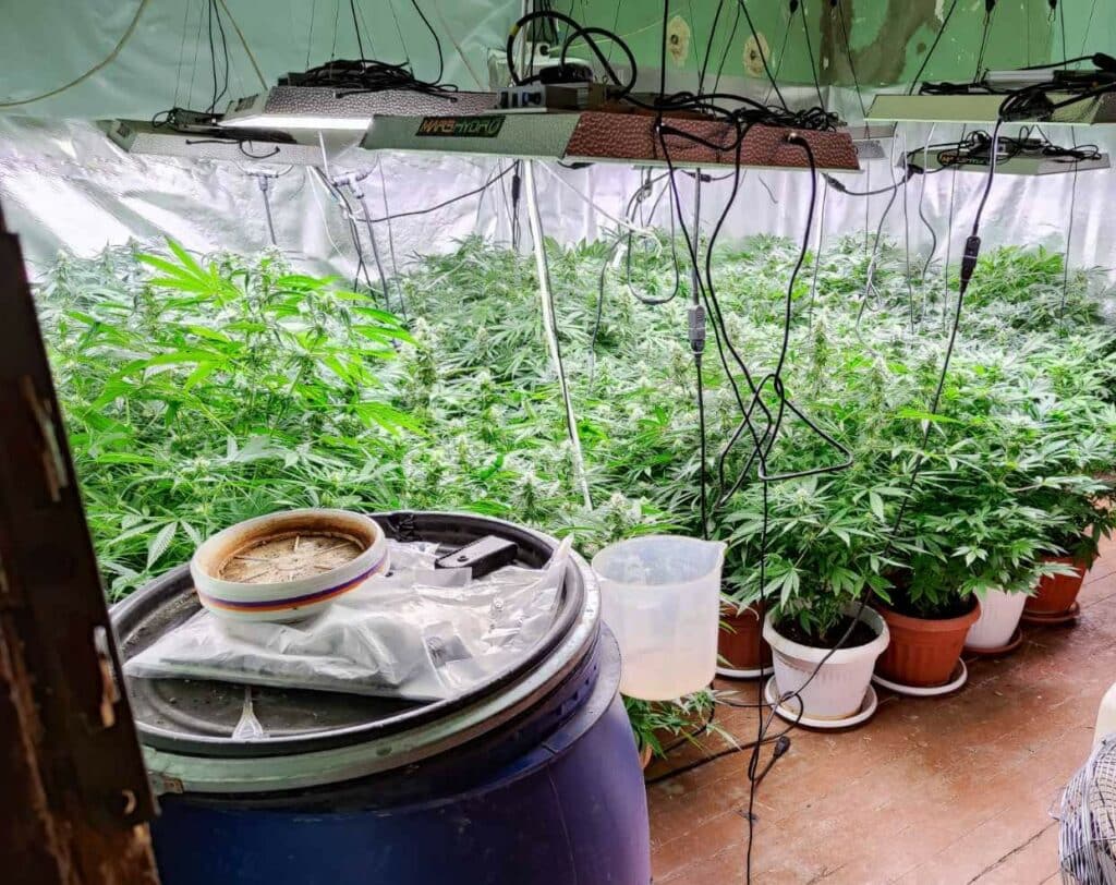 Обособена в няколко помещения, тя е била оборудвана със системи за вентилация и осветление. Иззети са били засадени 177 растения от вида на конопа с височина от 25 до 85 см, прeкурсори, пликове със зелена тревиста маса, реагираща на марихуана, както и електронна везна, вакуумираща машина и други пособия.