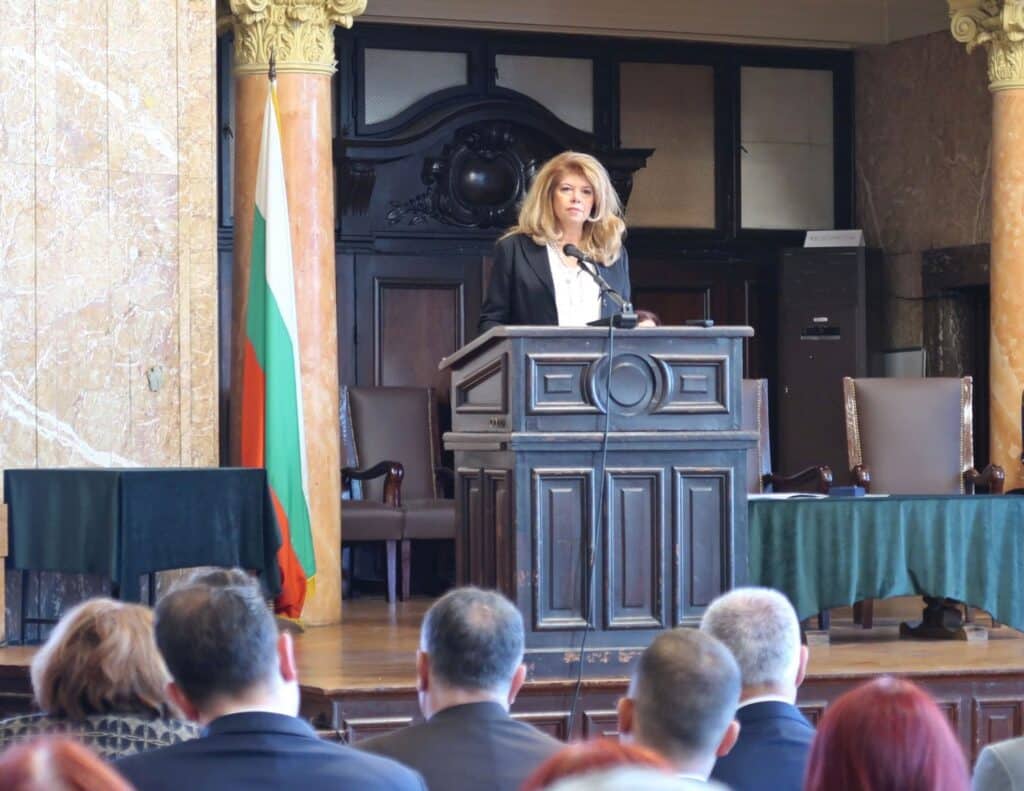 „За България като европейска държава от XXI век е неприемливо да се търпят системни криминални актове и насилие към българите в Северна Македония. Под същия купол на Софийския университет преди цял един век се събират именити учени и общественици, за да основат Македонския научен институт и той „да проучва историята, географията, етнографията и стопанския живот на Македония, да събира исторически материали по освободителните борби на македонските българи, като подготви системна и подробна история на тия борби“, посочи в приветствието си вицепрезидентът. Тя изтъкна, че в стогодишния си опит институтът многократно стига до извода, че е погрешно да се гради „македонска идентичност“ на антибългарска основа.