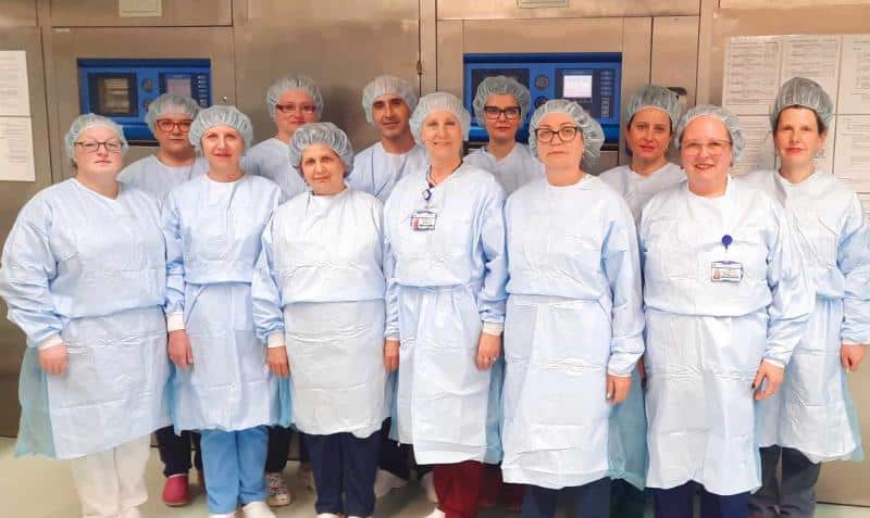 Колкото по-съвършен става инструментариумът, толкова по-стриктна трябва да бъде стерилизацията. Ако допреди години медицината се задоволяваше с изваряване на ножици и скалпели в метални съдове, днес това е отживелица. Сегашната хирургическа апаратура освен добре познатите скалпели включва още кабели, оптични връзки, видеокамери, които се използват при ендоскопски операции, безброй чувствителни консумативи. Всички те са в досег с пациента и трябва да бъдат стерилни. Тук подготвят за операционните стерилни марли, операционно бельо, консумативи, маски за обдишване, бебешки шишета и т.н. В звеното работят 12 души.