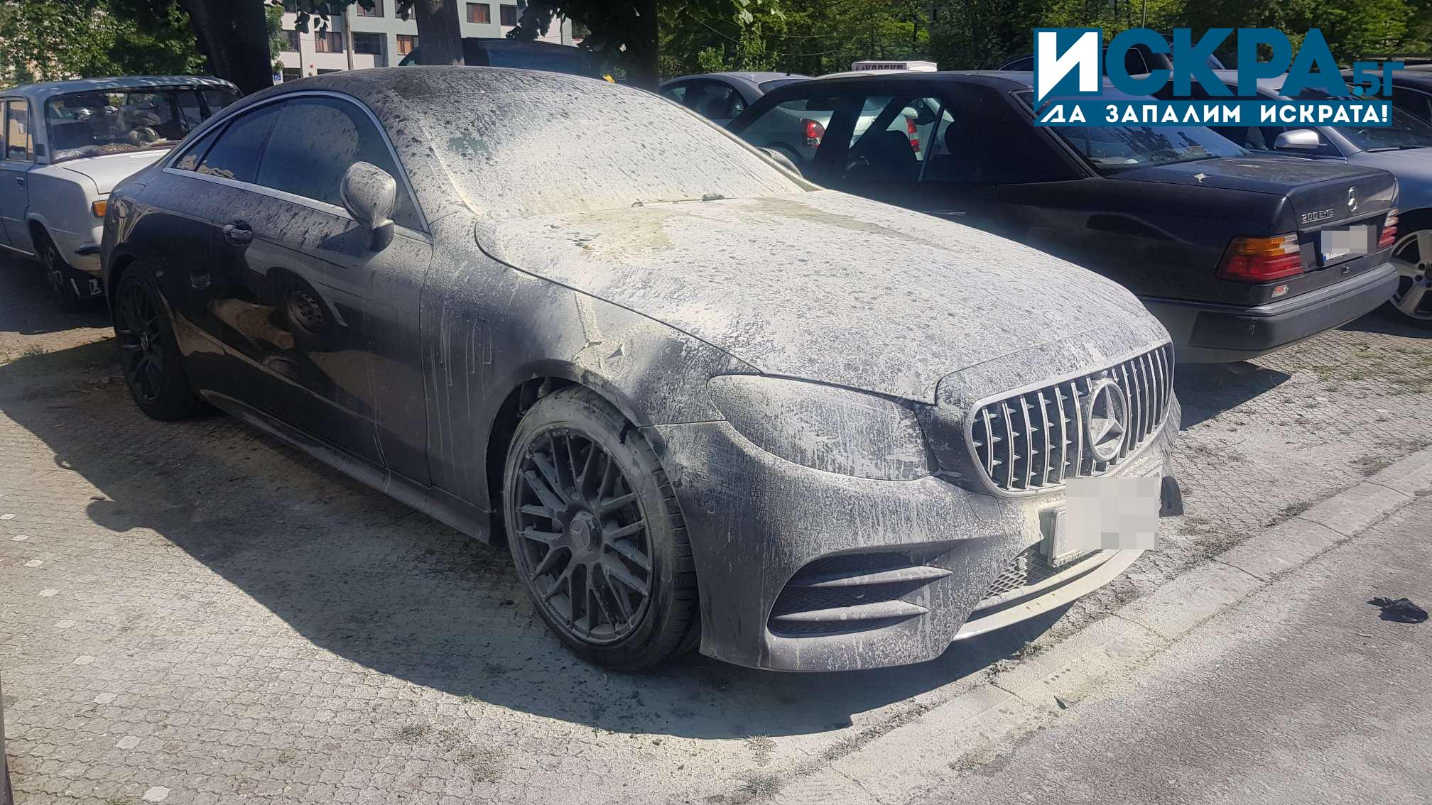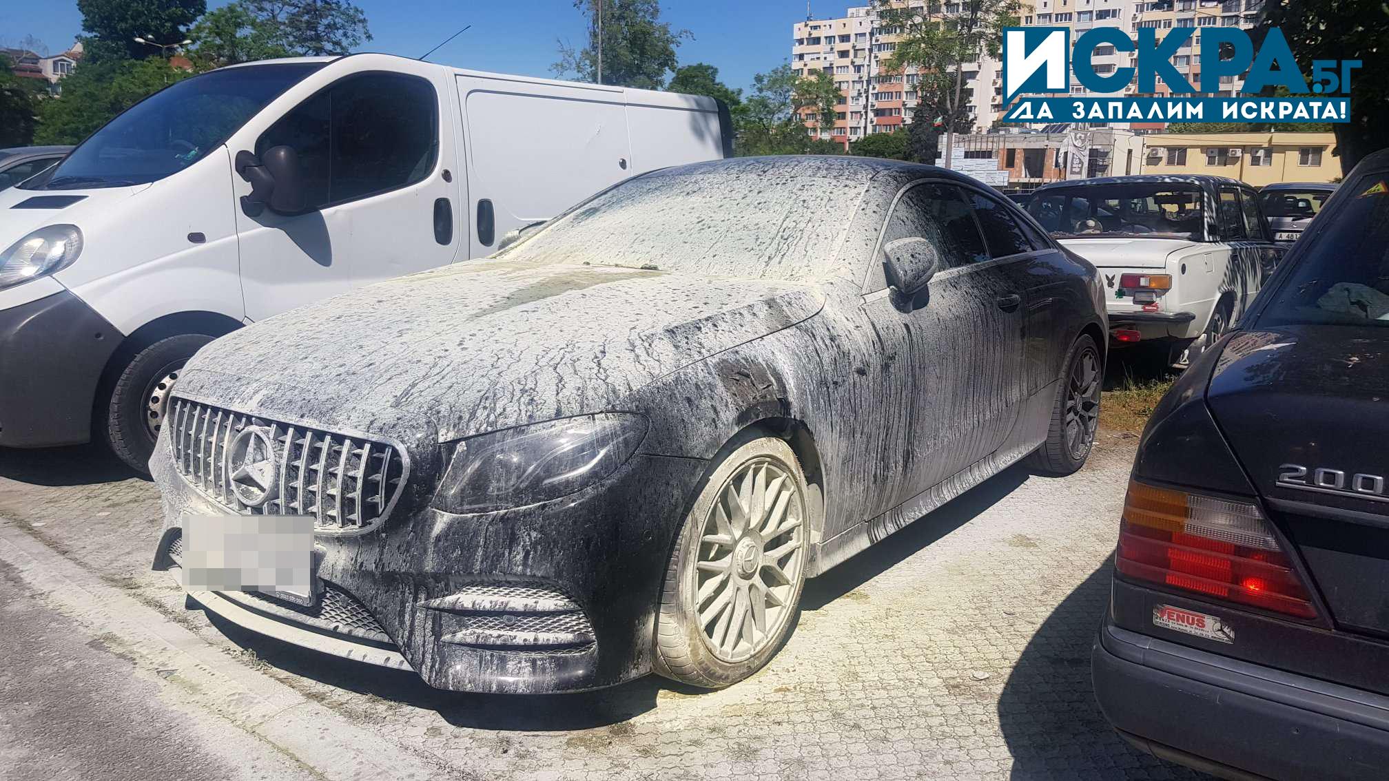 Читател на Искра.бг изпрати снимки на подпаления „Mercedes E220“, паркиран на общинския паркинг на ул. „Ген. Гурко“ в Бургас.