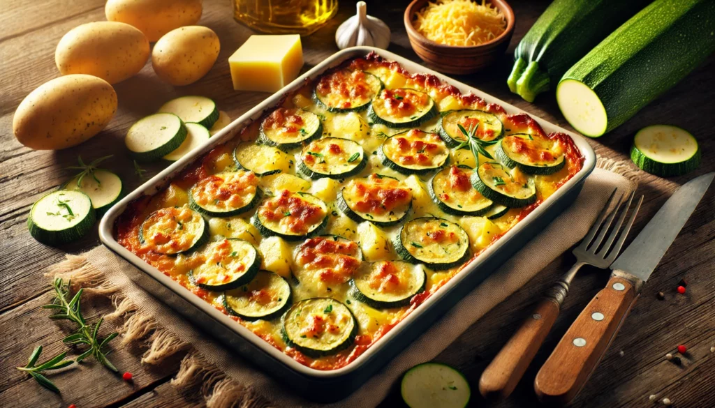 Огретенът с тиквички и картофи е лесно, бързо и вкусно ястие, което е подходящо както за обяд, така и за вечеря. С хрупкавата си кашкавалена коричка и богатия аромат на подправките, той ще се превърне в любим избор за цялото семейство.
