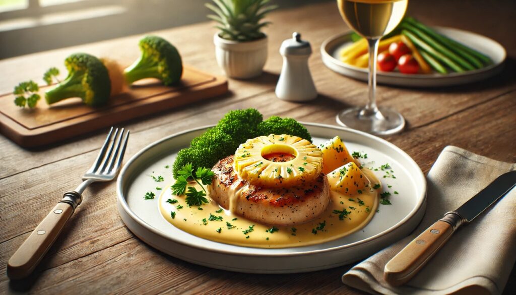 Пилешкото филе с ананас и сос от сирена е изискано ястие, което съчетава нежността на пилешкото месо със сладостта на ананаса и богатия вкус на сирената. Тази комбинация предлага уникално кулинарно изживяване, подходящо както за специални поводи, така и за разнообразяване на ежедневното меню.