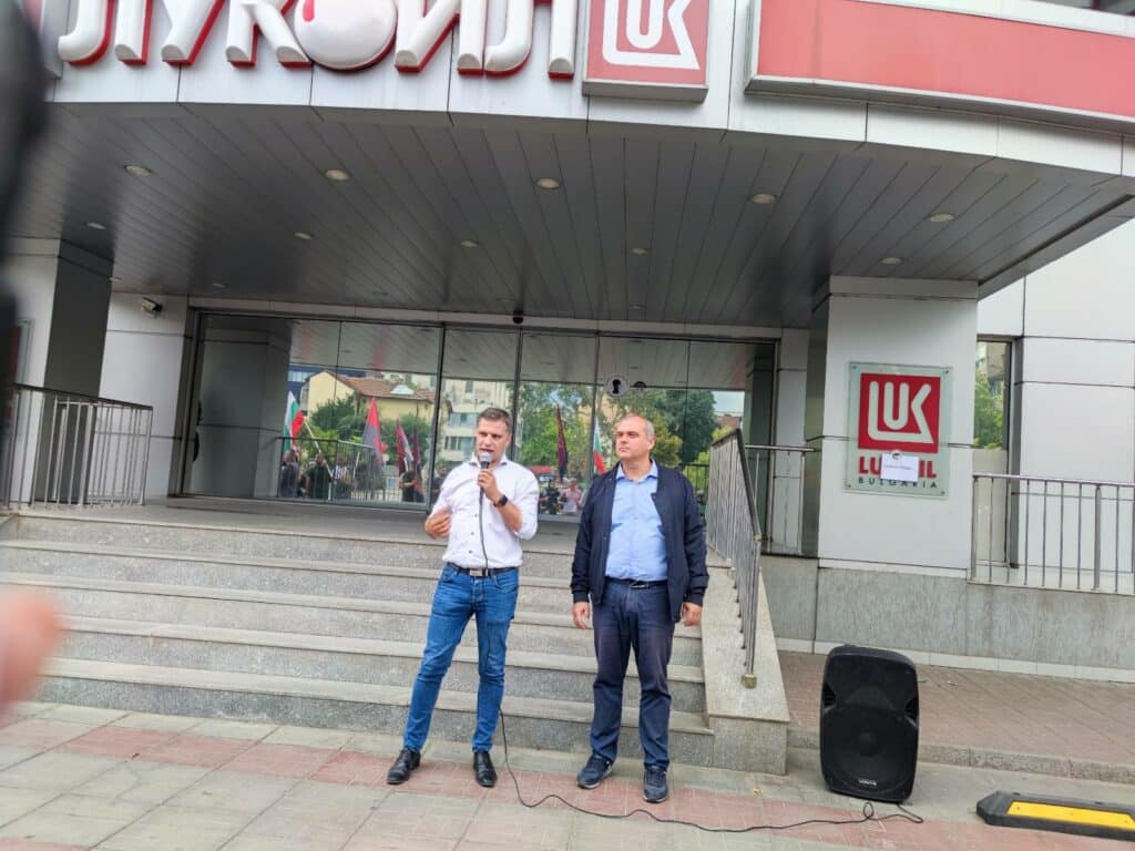 С тези призиви тримата съпредседатели на ВМРО Ангел Джамбазки, Искрен Веселинов и Александър Сиди, преградиха главния вход на централния офис на „Лукойл“ в София. Заедно със симпатизанти и гневни граждани те настояха ръководството на руската компания да прекрати доставката на руски нефт през швейцарски доставчик, а да извършва това пряко, с което ще отпадне оскъпяването с 30 долара на барел.