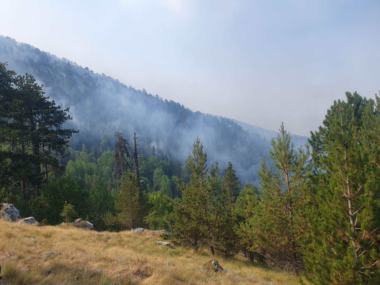 Военнослужещите остават в готовност за гасене на големия горски пожар, който гори на територията на Република Гърция, в случай на преминаване на територията на нашата страна.