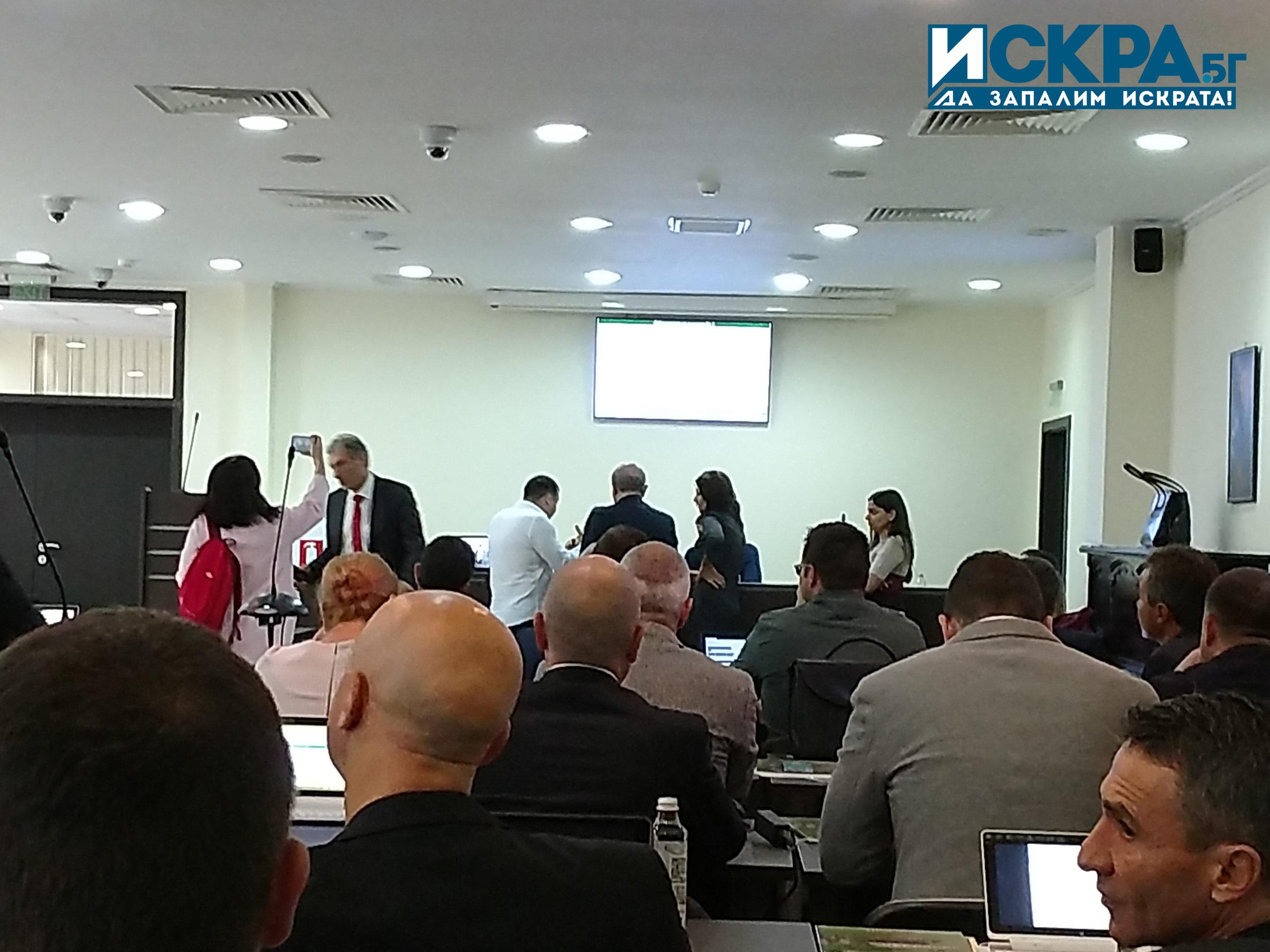 Стигна се до прегласуване заради проблеми със системата. Грешката в системата предизвика смут залата и Константин Бачийски от СЕК, който сигнализира за нея, беше нападнат вербално от други общински съветници. Стигна се до ожесточени дебати и размяна на остри реплики, като редица членове на местния парламент станаха от местата си.