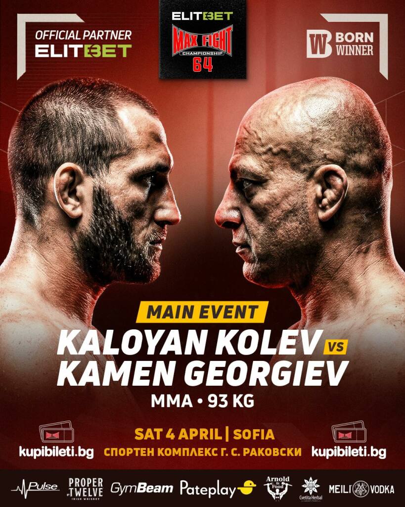 Един от най-очакваните сблъсъци в българския ММА ще оглави бойната карта на ELITBET MAX FIGHT 64 на 4 април в София. Столичната спортен комплекс „Г. С. Раковски“ ще се превърне в арена на една дългочакана трилогия – Калоян Колев срещу Камен Геориев.