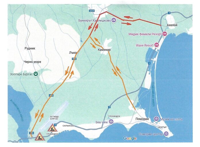 Община Бургас се извинява за причиненото временно неудобство на водачите на МПС и им напомня, че могат да ползват следните алтернативни маршрути в посока за град Поморие и к.к. „Слънчев бряг“ (съгласно приложената схема):