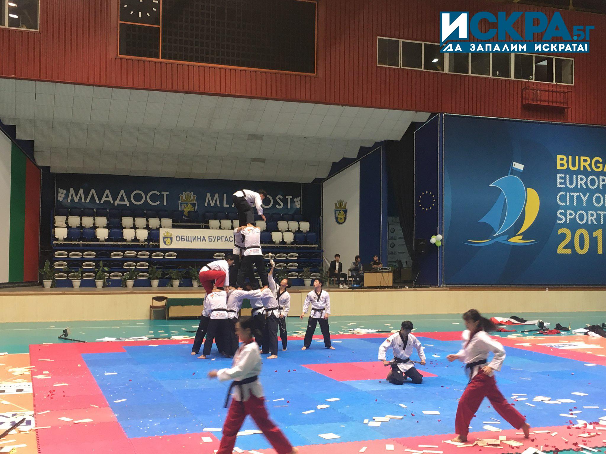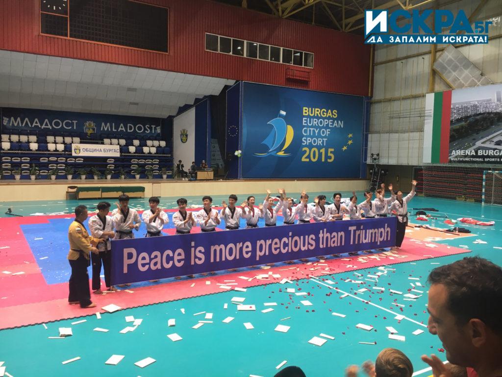 Таекуондистите започнаха с представление с пожелание за мир и благоденствие. То показа красотата на корейското бойно изкуство, включвайки в образа Света София, принцеса на мъдростта и образа на розата, която обича топлото слънце.