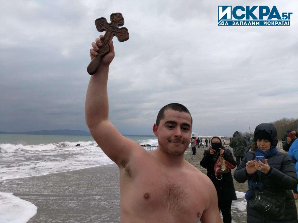 22-годишният Яким Георгиев извади Богоявленския кръст в Бургас. Младежът за първа година участва в ритуала. Той е студент в Англия, научи журналист на Искра.бг.